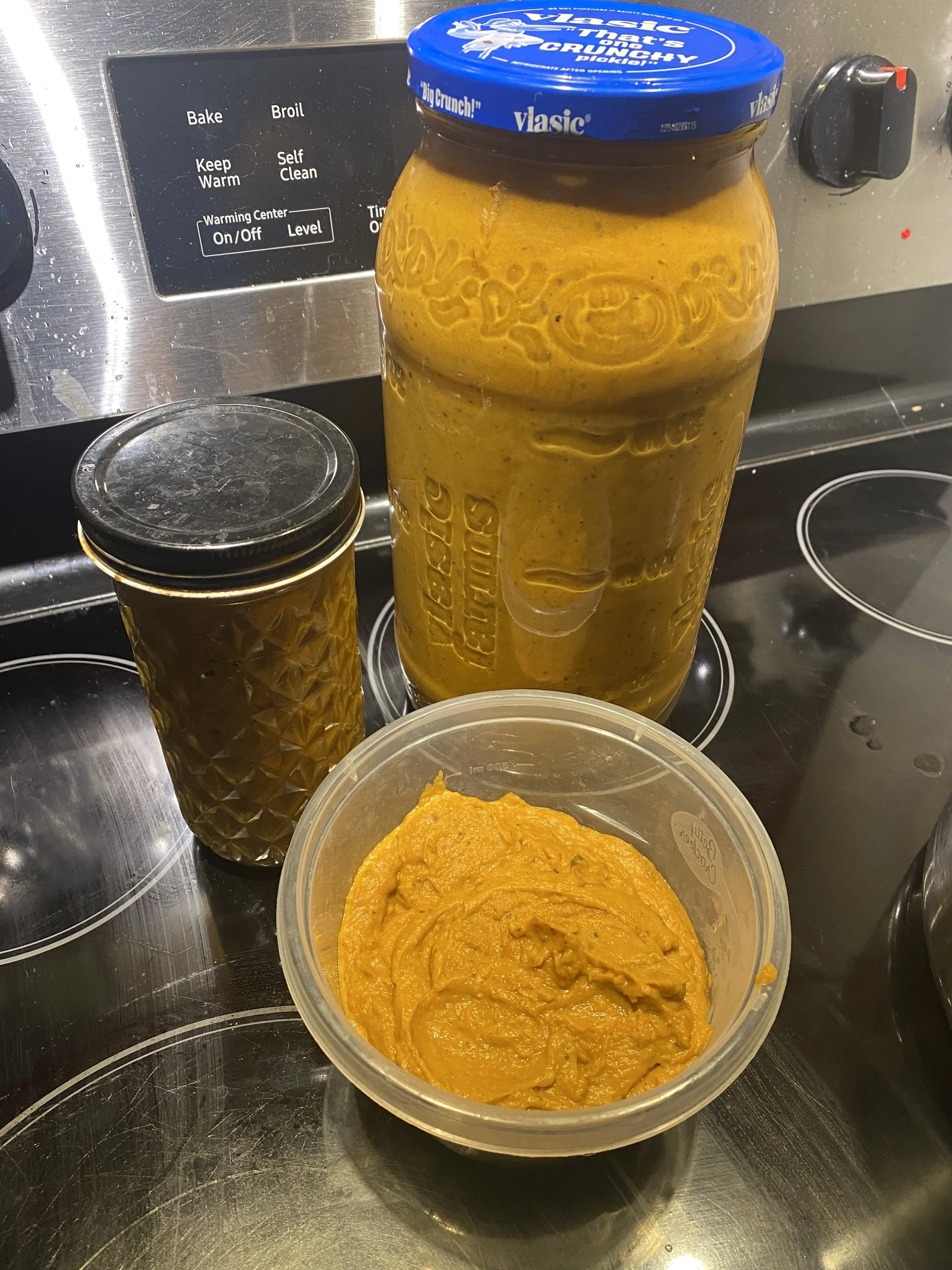 Eggplant sauteed with onions, carrots, garlic, spices, vinegar, olive oil and tomato paste. Pureed. Great appetizer on rye bread or a side dish.